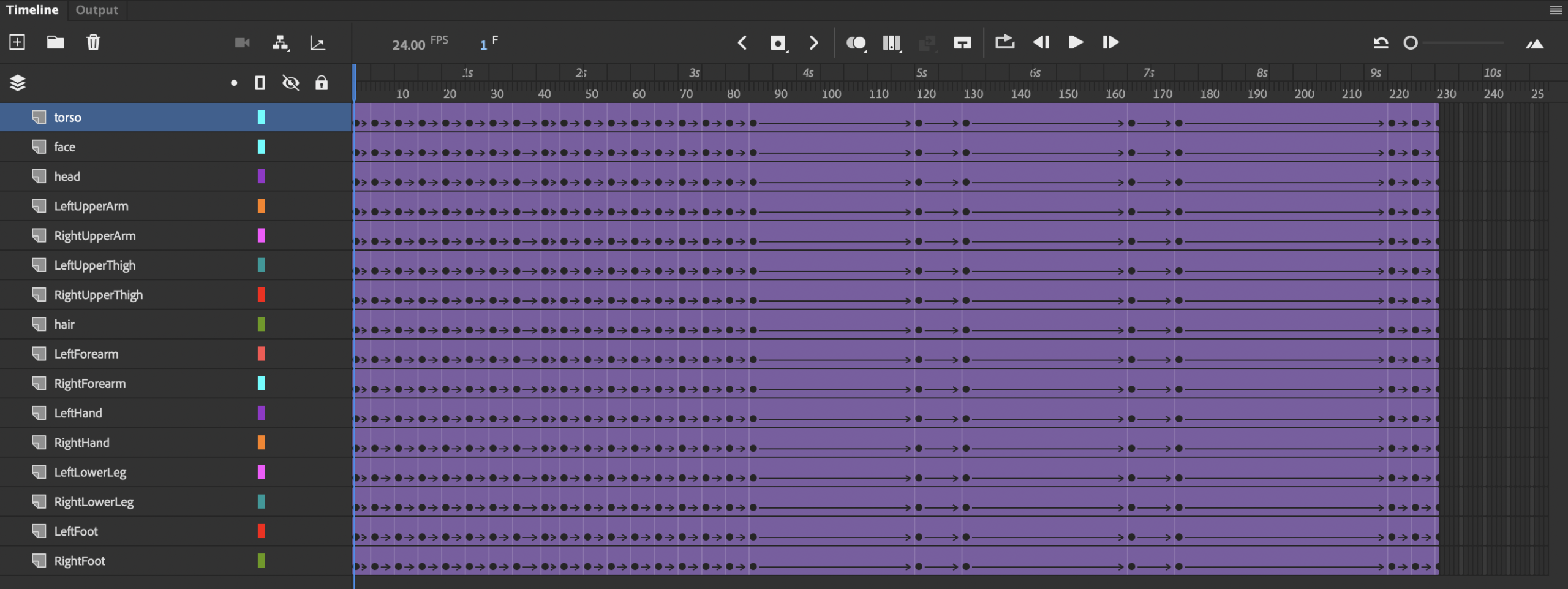 In Animate, most of my work was focused on making the movement look natural. I adjusted anchor points, tested rotations, and played around with timing. The hips were the trickiest part, but once they felt right, the rest of the walk cycle started to flow better. Small adjustments, like adding a bit of shoulder movement or making the arms swing naturally, helped bring the character to life.