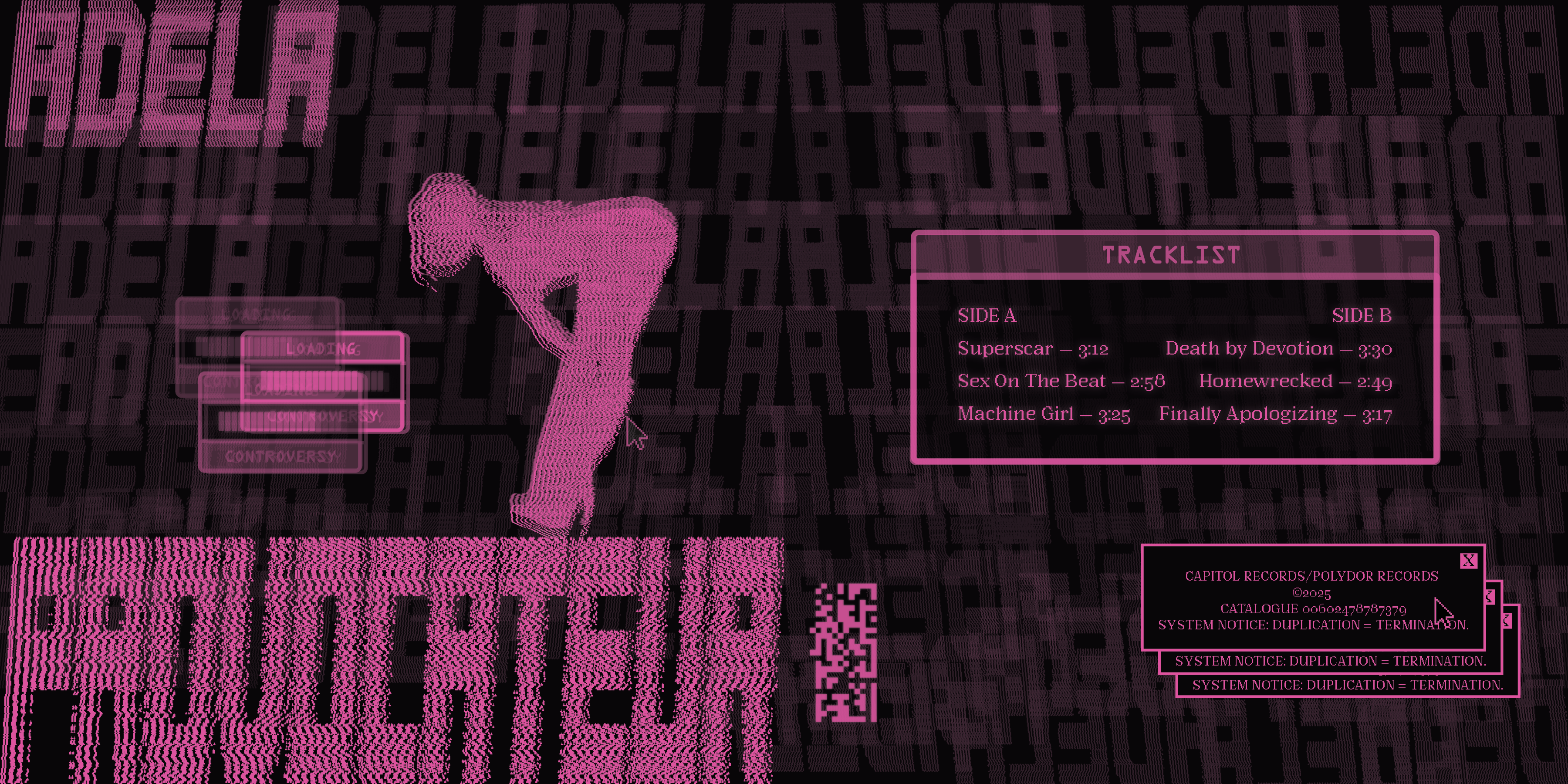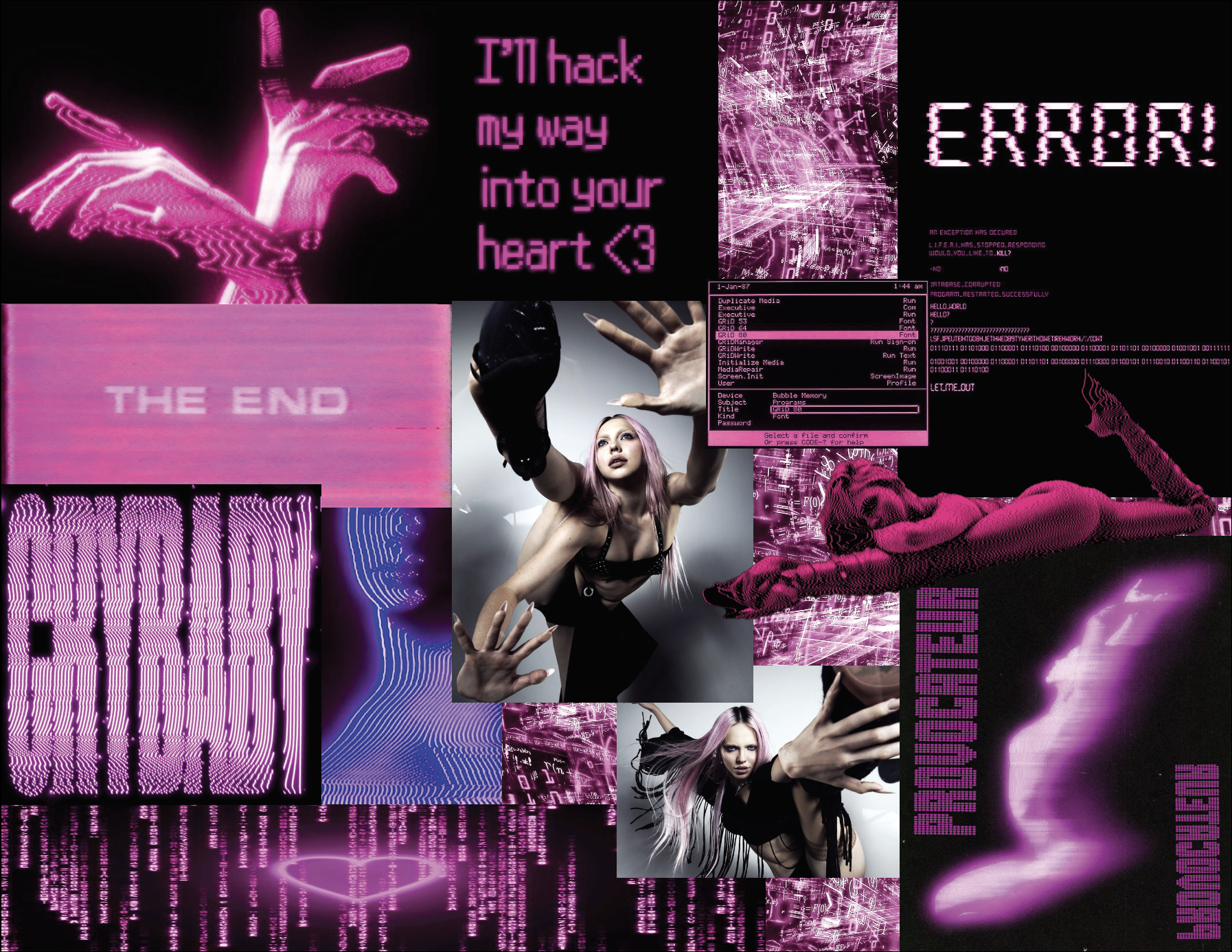 This collection was inspired by Adela Jergova’s album The Provocateur, whose sound immediately pushed me toward glitchy, art-pop visuals dripping with attitude. I wanted to tap into that unapologetic internet IT-girl energy — bold, curated, a little chaotic, but undeniably feminine. The heavy pink palette ties everything back to a femme-fatale aura while still feeling modern and digital. I had so much fun experimenting with texture, distortion, and stylized typography, blending techniques from both Adobe Illustrator and Photoshop to build a world that feels as dramatic and provocative as the music itself.